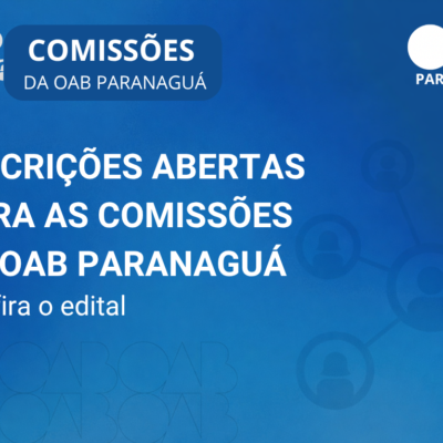 Está no ar o edital de abertura de inscrição, para participação nas Comissões temáticas da OAB Paranaguá. Os interessados poderão se inscrever até às 18h do dia 06 de abril, no link: https://intranet.oabpr.org.br/servicos/loginPE/index.asp?url=intranet.oabpr.org.br/site/servicos/comissoes/inscricao/inscricao.asp Ao efetuar a inscrição é necessário escolher até duas comissões, indicando a ordem de preferência. Advogados que já...