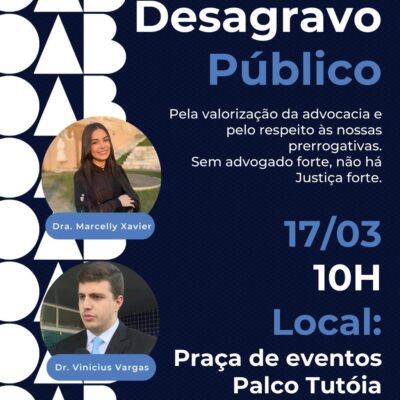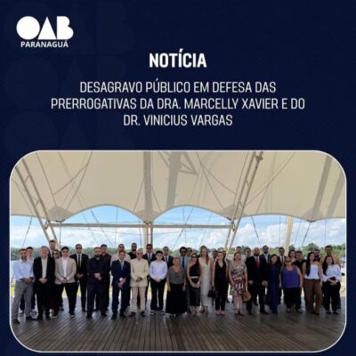 A Ordem dos Advogados do Brasil – Subseção de Paranaguá realizou, nesta data, ato de desagravo público em defesa das prerrogativas da advocacia, reafirmando seu compromisso intransigente com o livre exercício profissional e a proteção dos direitos dos advogados. O ato foi promovido em solidariedade aos advogados Marcelly Xavier e...