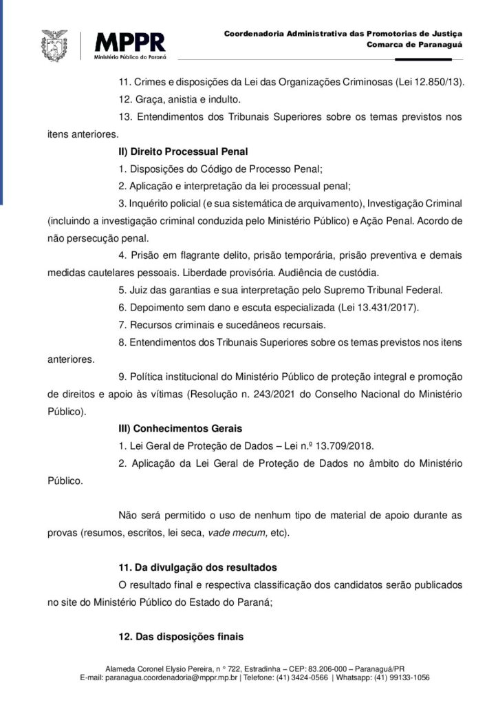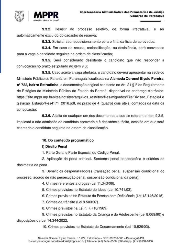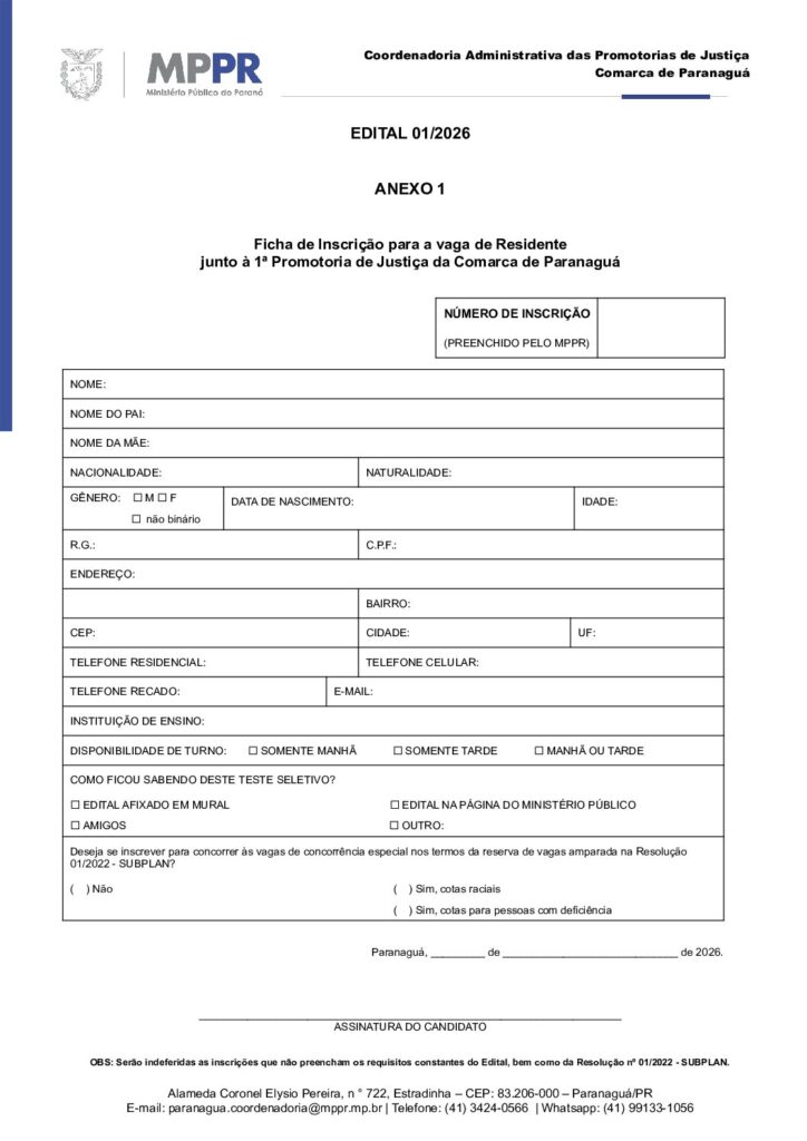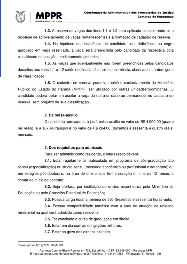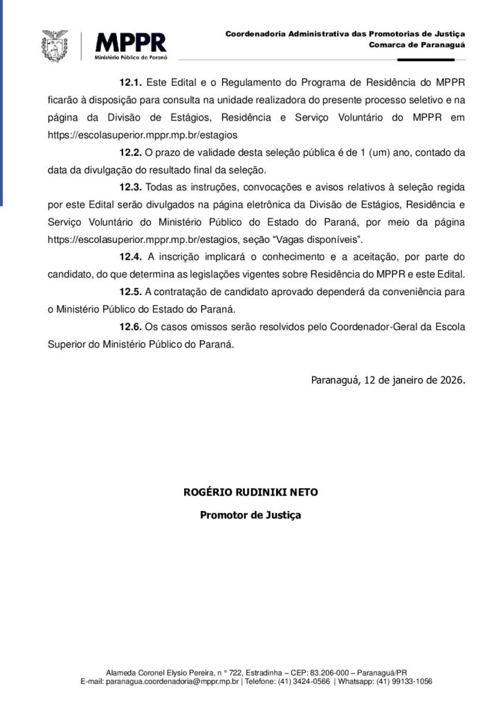 RESIDENTE no Ministério Público do Estado do Paraná, de Paranaguá – 1ª Promotoria de Justiça,