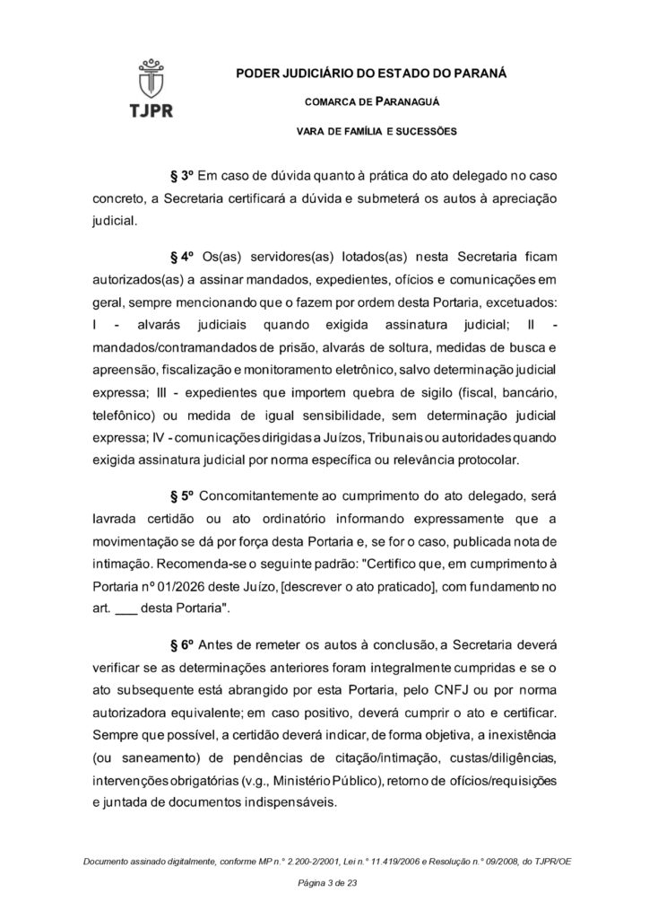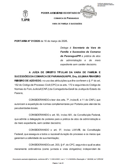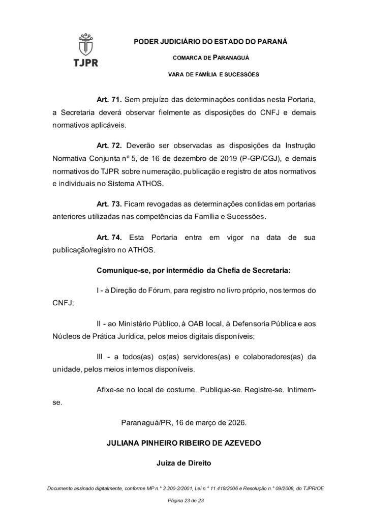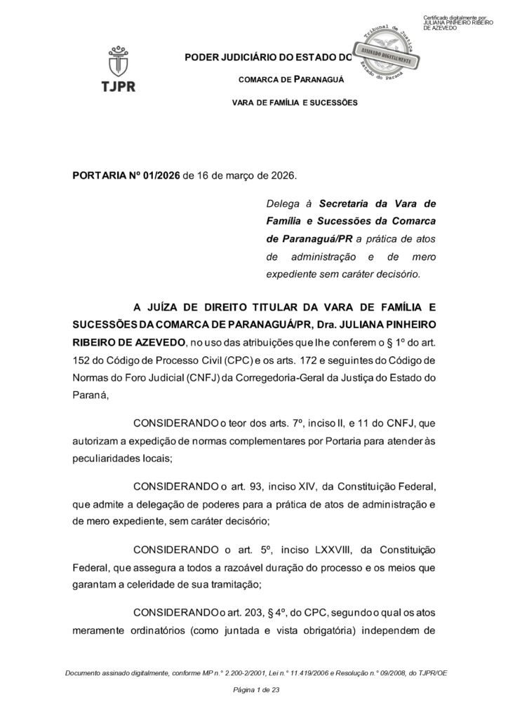 • Ofício Vara da Família e Sucessões de Paranaguá – Portaria 01/2026